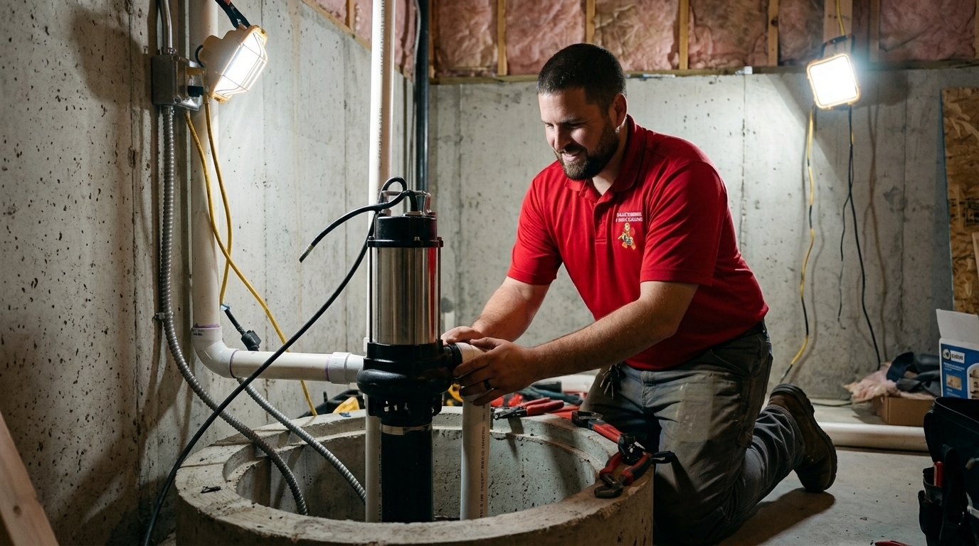 Basement bathroom or laundry room below city sewer grade — new ejector pump systems.