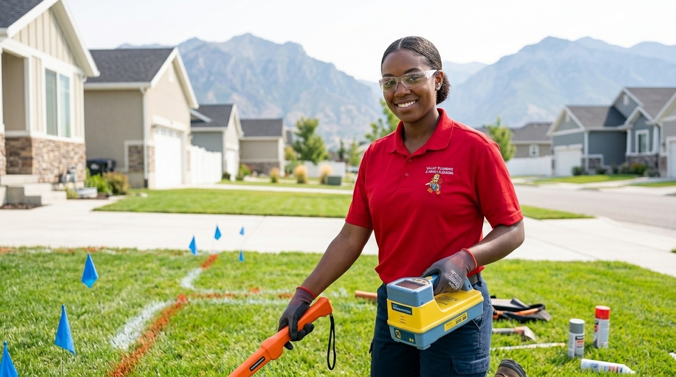Pre-dig utility mark-out — gas, water, electric, sewer, fiber — before any excavation.